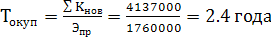 Время окупаемости (для годового заказа n=16000 лопаток) рассчитывается по формуле