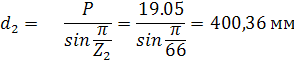 Делительные диаметры звездочек