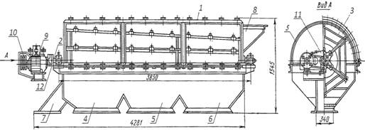 через загрузочный лоток 8. Привод барабана включает в себя электродвигатель 9,