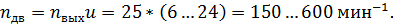 Определяем необходимую асинхронную частоту вращения вала двигателя по