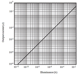 выходного тока датчика SG01S в зависимости от интенсивности излучения