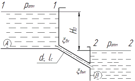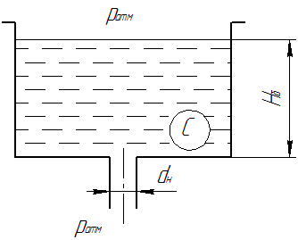 С и из него сливается вновь в резервуар А через насадок диаметром