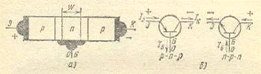 Упрощенная структура плоскостного р-n-р-транзистора показана на рис. 1а,