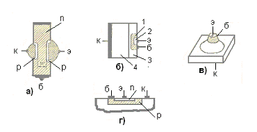 а - сплавного; б - эпитаксиально-диффузионного; в -