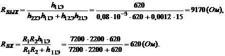 сопротивления каскада Rвых и Rвх