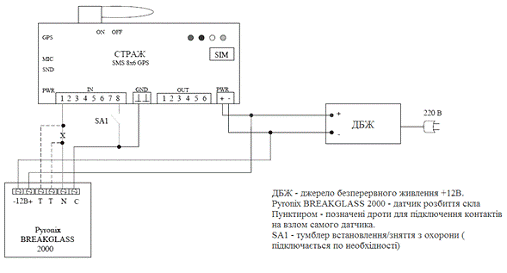 повідомлення (SMS) по каналу зв'язку GSM у разі тривоги. Пристрій може