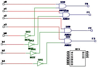 логічного пристрою, що реалізує 4 логічні , і чотири арифметичні функції.