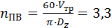 розрахували швидкість транспортування ПВ в РК Прк= 1,5 ПВ/год, число оборотів