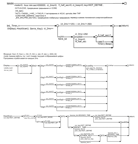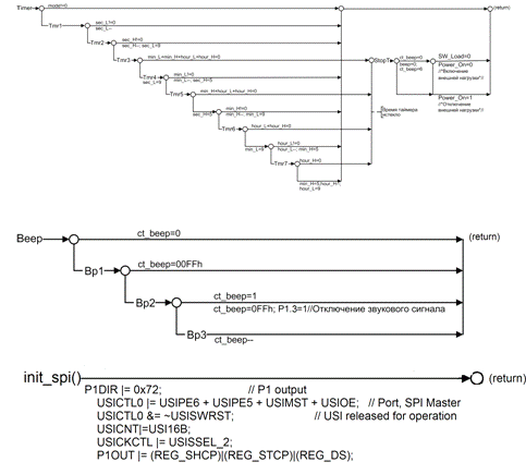 Рис.4. Таймер на микроконтроллере MSP430.Р-схемы