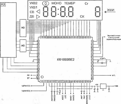 специализированной микросхеме DA2 типа ТА2003Р фирмы JVC которая представляет собой однокорпусный радиоприемник с