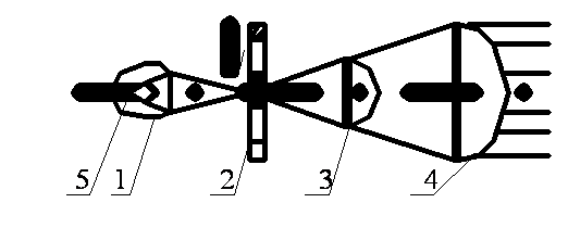 зеркальный отражатель; 2 - рамка со светофильтрами; 3,4 - бесцветные линзы; 5 -