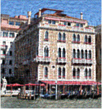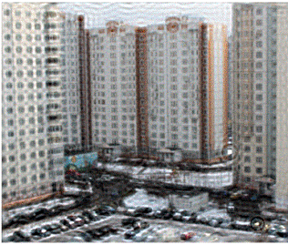 различимы рамы на окнах, машины. Артефакты уже другие, нежели в предыдущем