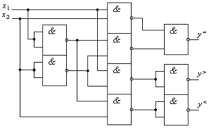значения двух чисел и вырабатывают единичный сигнал на одном из трех выходов
