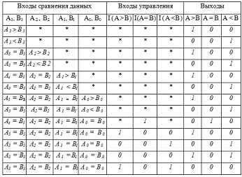 подлежащих сравнению. Управляющие входыI(А> В),(А = В) и I(А < В) могут