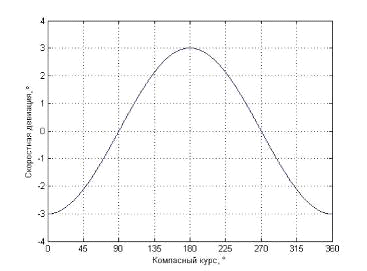 Самые большие значения девиации определены на курсах в пределах от 0° до