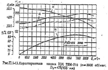 станций с учетом подпорных насосов. Характеристика основного насоса НМ 7000-210
