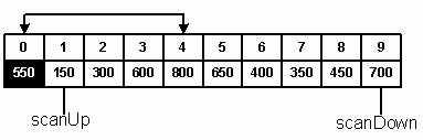A[i-1], A[i-2] и т.д. Просмотр заканчивается на элементе A[j], который меньше