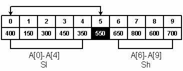 подходящее место для A[i] будет найдено, этот элемент вставляется в точку j.