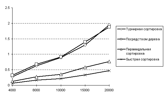 000-, 10 000-, 15 000- и 20 000-элементный массивы,