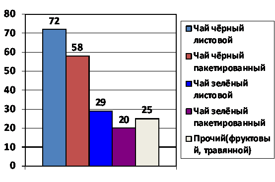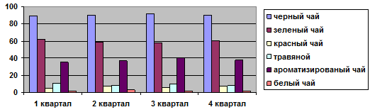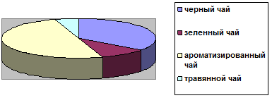 ароматизированный чай, на втором месте черный и лишь малую часть занимают