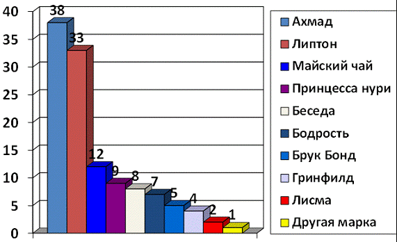 Рисунок 2. Ассортимент торговых марок чая, реализуемых в магазине