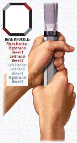 континентальной хватки на одну грань против часовой стрелки (по часовой для