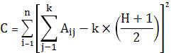 где С - сумма квадратов отклонений сумм рангов по каждому объекту от