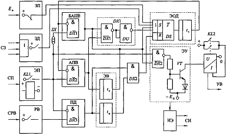 и возбуждает соответствующую цепь УВ управления воздушным выключателем линии