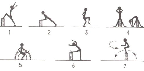перевёрнутой гимнастической скамейки (с различным положением рук).