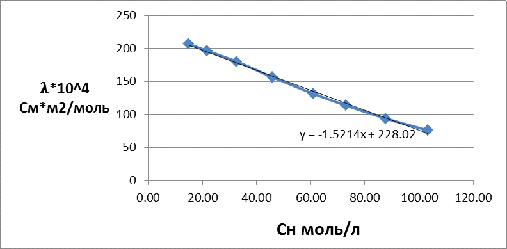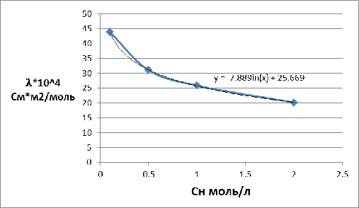 зависимость эквивалентной электропроводности от нормальной концентрации,