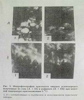 микрофотографии кристаллов твердых углеводородов, полученных при кристаллизации