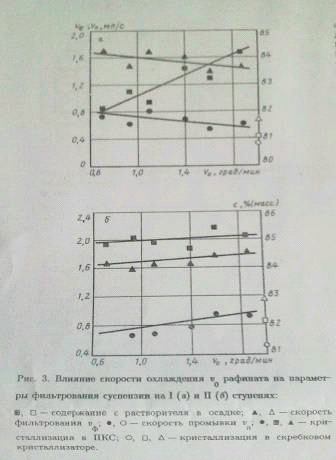 скорости охлаждения суспензии рафината на параметры её фильтрования на I и II ступенях.