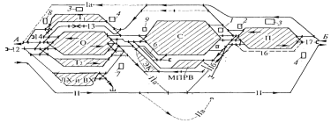 ПО - приёмо-отправочный парк; А, Б -
