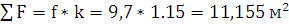 принимается для четырехосного крытого вагона - 9,7 м2;
