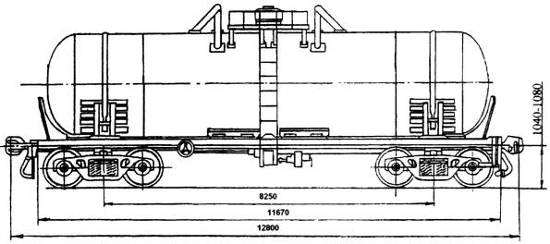 линейных размеров 4-х осной цистерны для перевозки сжиженных газов. В