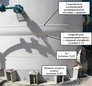 стенки цилиндрической обечайки и днищ, находящихся под воздействием внутреннего