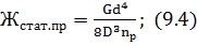 Статическая жесткость одной цилиндрической винтовой пружины: