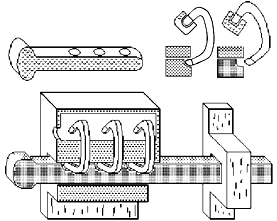 зажатыми шестью стержнями.
