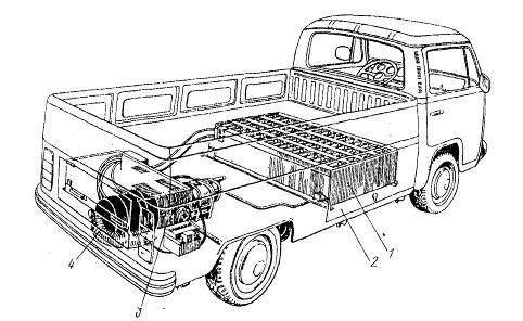 електромобіля: 1 - кермове керування; 2 - передня ресора; 3 - силова установка;