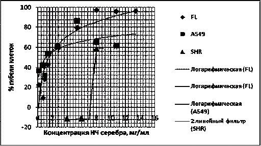 на жизнеспособность клеток линий А549, SHR и сублинии FL по результатам