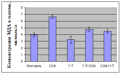 Показатели перекисного окисления липидов и антиоксидантной защиты при интоксикации четырёххлористым углеродом