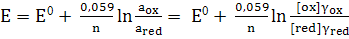 (1) для знаходження активності або концентрації учасника електродної реакції за
