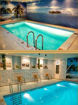 свеж. Длина бассейна 7 метров, глубина - 2 метра. Система «противоток»