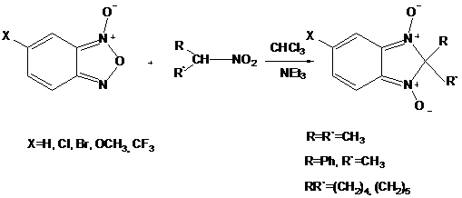 2,2,-диметил-4-нитро-2Н-бензимидазол-1,3-диоксид (фиолетовое), которое при нагревании