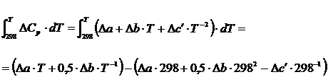 у•298 = -262558 + 280136+ 42,97•298•ln298 + 0,5•109,43•10-3•2982 + 0,5•18,47•105•298-1 = 98487,53;