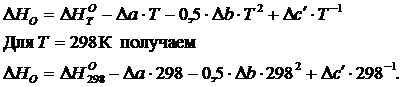 Исходные данные: ΔНº298, ΔSº298, Cp = а + вТ + С¢Т -2 веществ, участвующих в