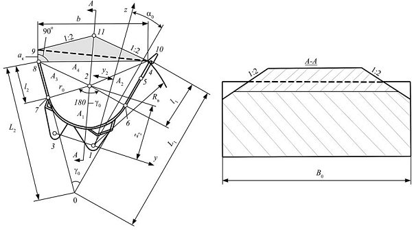 радиуса r0(y2,z2) и угловой α0;