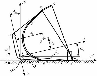 ковшовой системе координат Oyz с помощью трёх координат: линейных центра