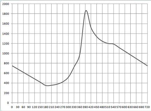 Рисунок 3 - График изменения температуры по углу поворота коленчатого