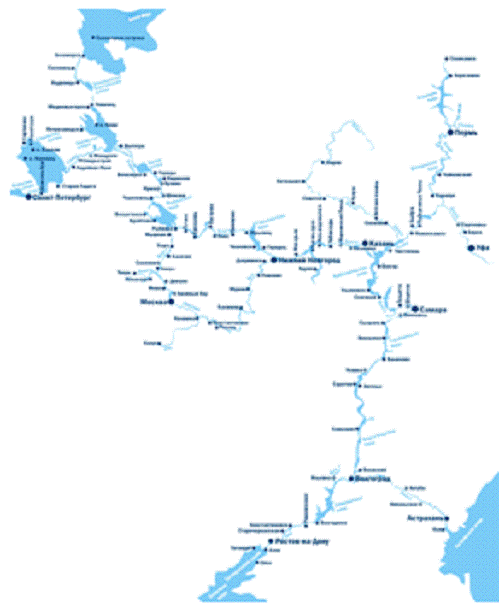 В Волго-Вятском бассейне находятся крупные речные порты: Волгоград,